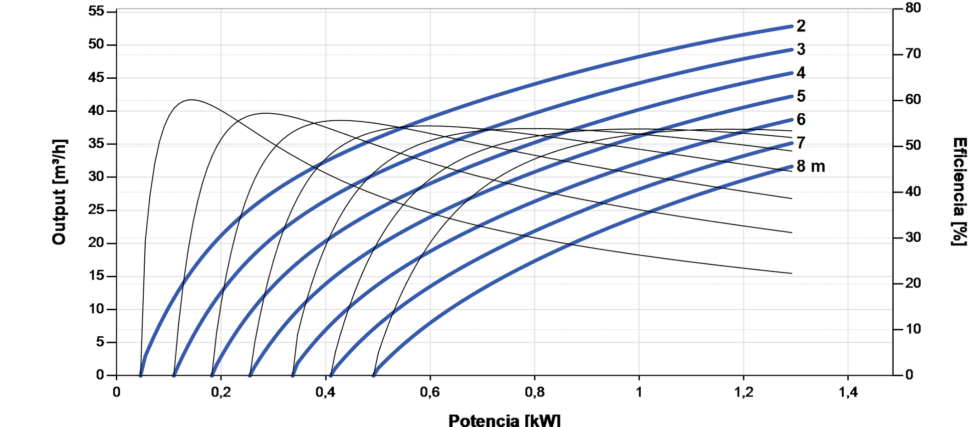 - C-SJ42-1 Hydraulics centrifugal (1 stage) with integrated non-return valve; hydraulic efficiency ≈67%; AISI 304 construction.