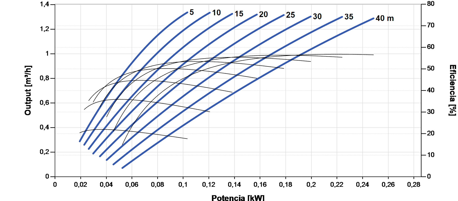 - Flow/head: 1.3 m³/h and 40 m, ideal for tanks, drip irrigation, and domestic supply.
