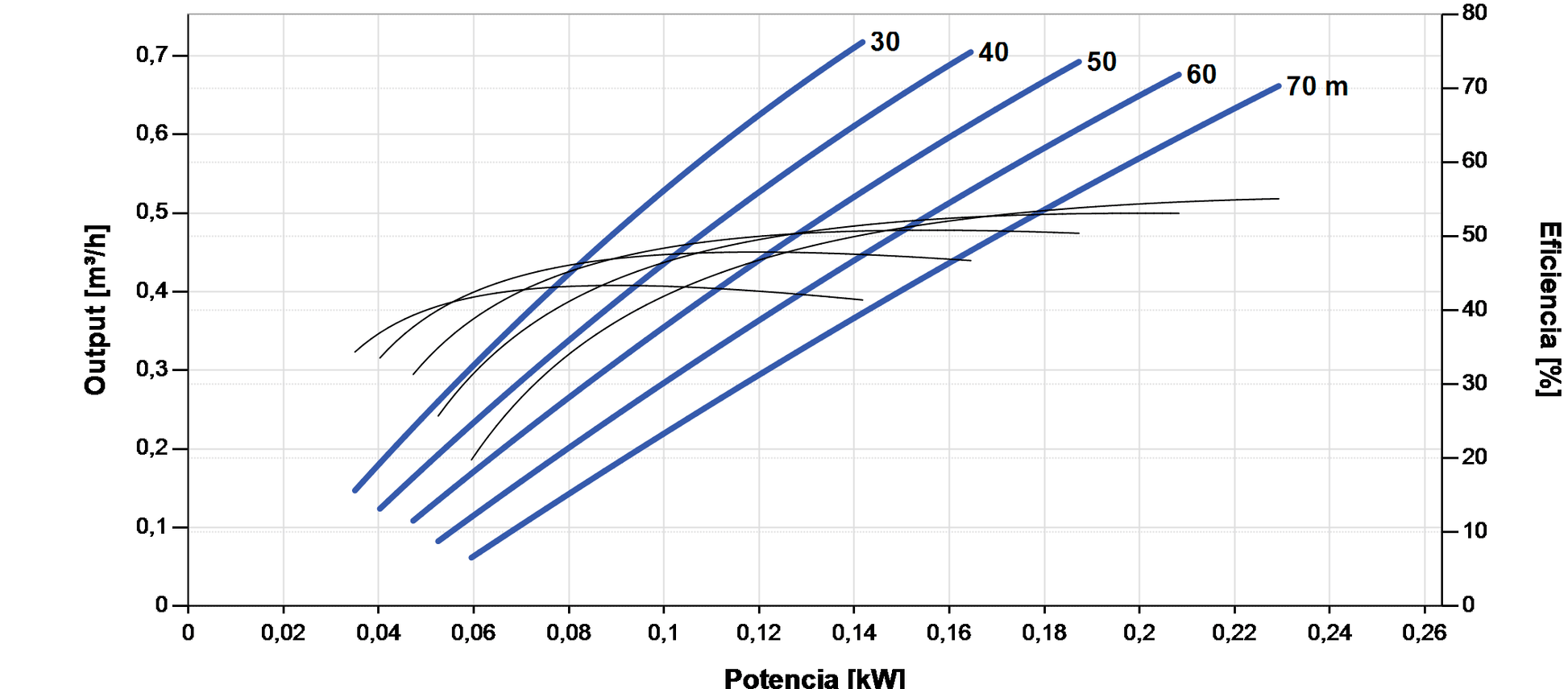 Reference head / flow rate Up to 90 m / 0.73 m³/h