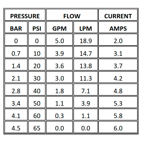 | Pressure (control) | Cut-off 55 PSI · Reset 40 PSI · Bypass 65 PSI (adjustable) |