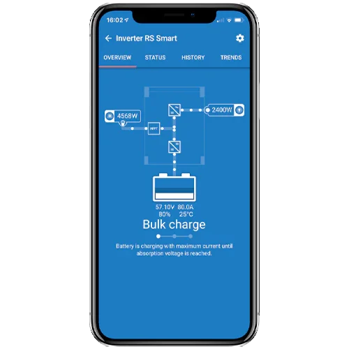 - Smart management: configuration/diagnostics from app or VRM portal via GX device.